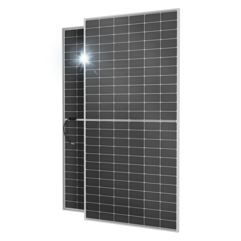 Es un panel fotovoltaico Monocristalino de tecnología PERC y Half-Cell (celda partida). Está compuesto por 144 celdas solares organizadas de forma que el panel pueda generar energía de manera más eficiente incluso en condiciones adversas.